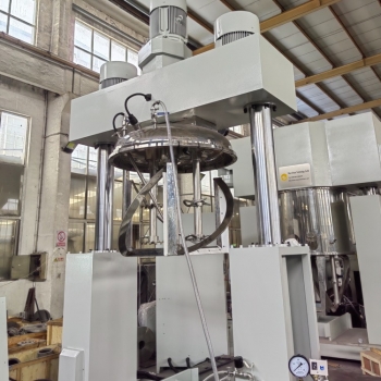 各種不同屬性的物料投放在一個攪拌桶內(nèi),通過麻花式攪拌槳葉及高速分散盤作圓周運(yùn)動,使得各種組份的物料充分的細(xì)化并且攪拌均勻。在該行星攪拌機(jī)的上部有一個進(jìn)料口,其它的一些小料可以通過這個料口進(jìn)行投入。它的優(yōu)點(diǎn)如下: