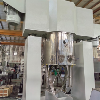 雙行星混合攪拌機的兩個雙攪拌框在桶體內(nèi)同時公轉(zhuǎn)并自轉(zhuǎn),可實現(xiàn)抽真空、加熱冷卻等,根據(jù)情況可實現(xiàn)轉(zhuǎn)速調(diào)節(jié)。如果配備多個攪拌桶,還可實現(xiàn)一臺雙行星混合攪拌機連續(xù)化作業(yè)。如果匹配液壓出料機,則會讓出料變得更加方便。